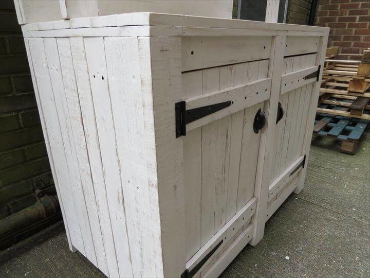 to be organized and well settled with all the kitchen things on their right places and this pallet kitchen cabinet unit is here to help you for storage purposes. The gorgeous looking pallet kitchen cabinet has been built with four cabinets in it two at the upper section of the unit and two at the lower part providing you a shelf gap between for some kitchen item’s display. The amazement increases more when the doors of the cabinets are opened as the inner space of the cabinets have been divided into more storage section using the shelves as the dividers.